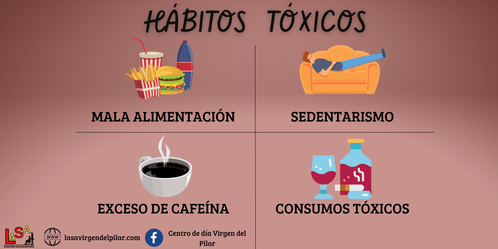 Por último, se debe evitar los hábitos perjudiciales como fumar, ingerir alcohol o grandes cantidades de cafeína. Las personas mayores fumadoras, tienen entre un 30-40% más de probabilidad de fracturarse la cadera que las no fumadoras de la misma edad.