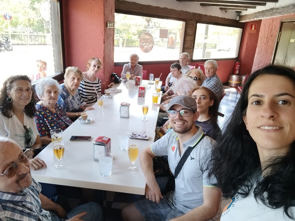 Tras caminar y descansar rodeados de un magnífico ambiente floral, tuvimos la ocasión de tomar algo fresquito en uno de los bares aledaños al «Parque Grande», donde rematamos la mañana con anécdotas y enriquecedoras conversaciones.